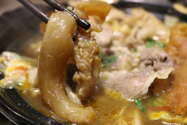 入鍋的腳筋顏色比較淺,而且店家很大方不是給小小一塊,看這大小,吃起來QQ的,好吃。如果想吃軟一點就讓他煮久一點哦!