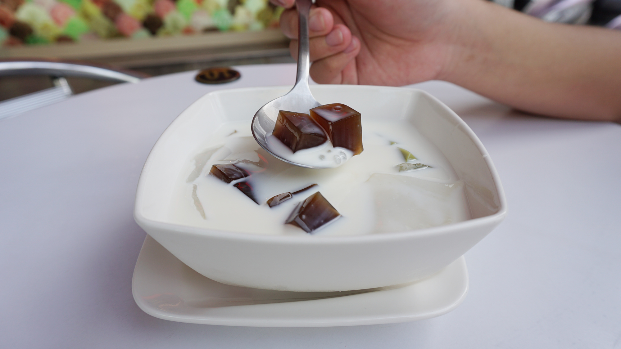 上面那是黑糖凍 、椰仁凍 、 抹茶凍 、還有寒天晶凍 詢問了下店員 ~