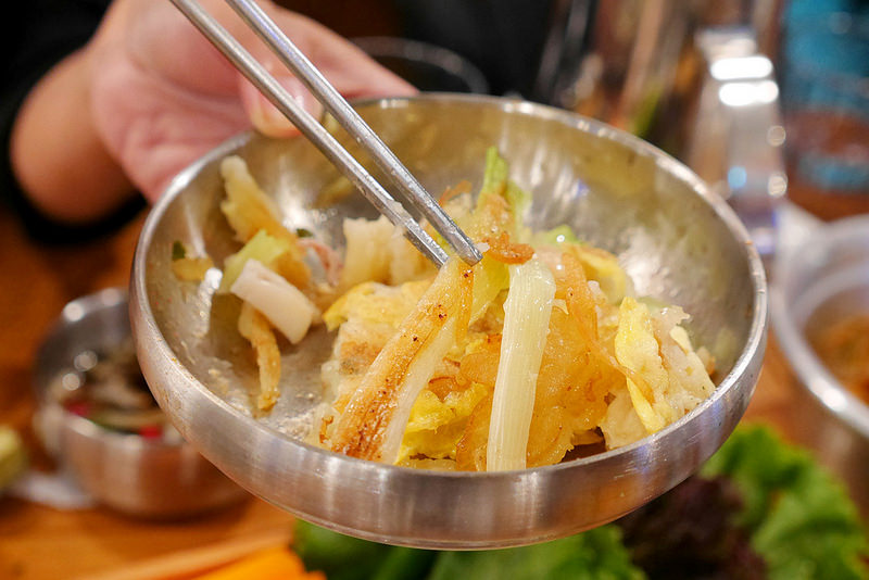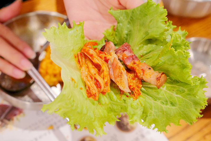 用來夾進生菜再加點泡菜相當對味..也是韓國烤肉的必備吃法喔..但泡菜不夠辣就是..