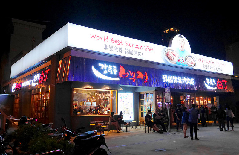 店面最顯眼佔地最大的..應該就以【姜虎東678白丁烤肉店】莫屬..幾乎一路過很難不看到..