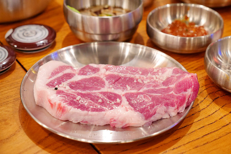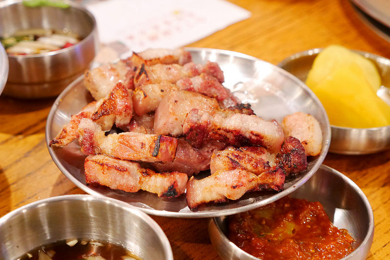 五花肉感覺是韓式烤肉一定不能錯過的肉類..不過這邊的五花肉挺特別是直接一大塊..