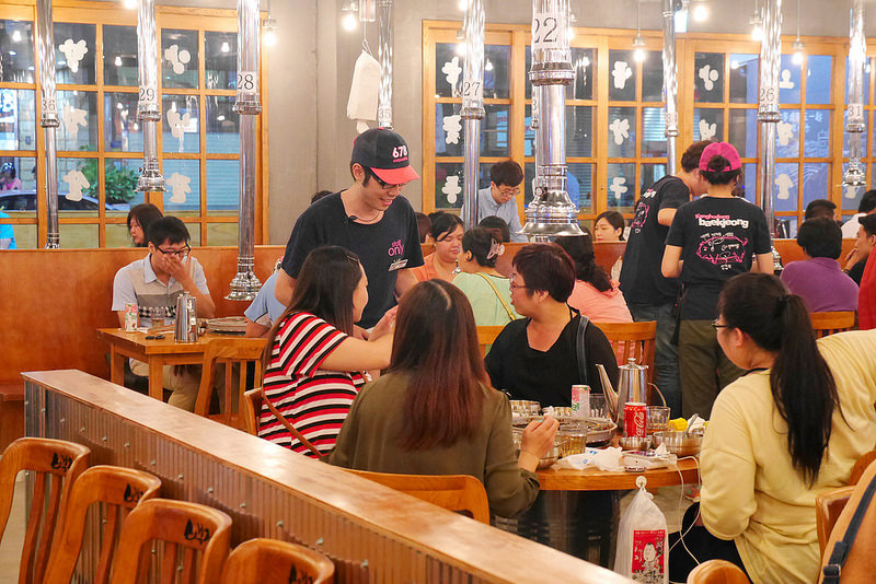 有分為圓桌跟團體長桌..最多有看到八個人共桌的..六人以上基本上都能開到兩個爐..