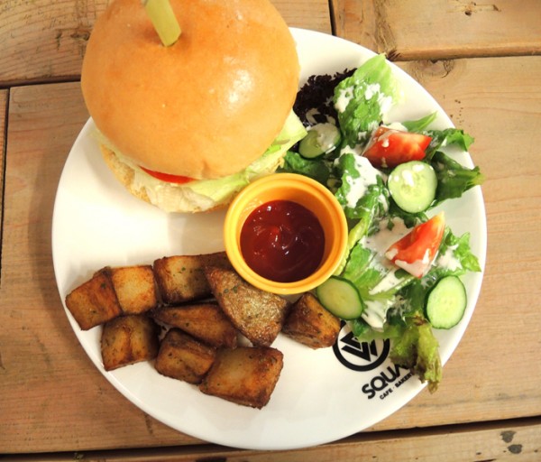 SQUAD手打漢堡排麵包外皮外酥蓬鬆,帶點焦香香氣,漢堡包不會太過乾。