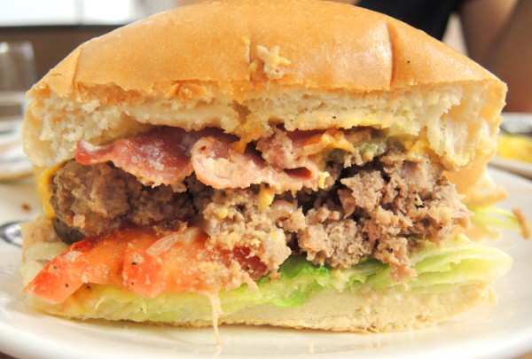 輕輕拿起漢堡,它的醬都快要爆出來~