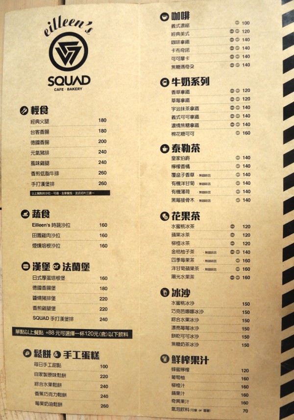 Eilleen's coffee餐點→ 再加$88可任選$120以內的飲品(超過補差額)