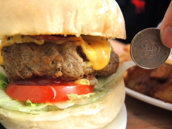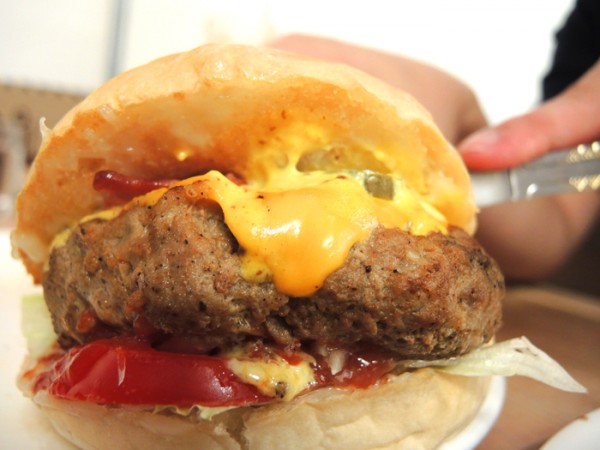 裏頭的漢堡肉也不干示弱,厚度約10元硬幣大小,有點可惜的是他的漢堡肉打得不夠扎實,而漢堡肉的調味恰恰好,不會太過重口味,能吃出原本肉排的滋味。