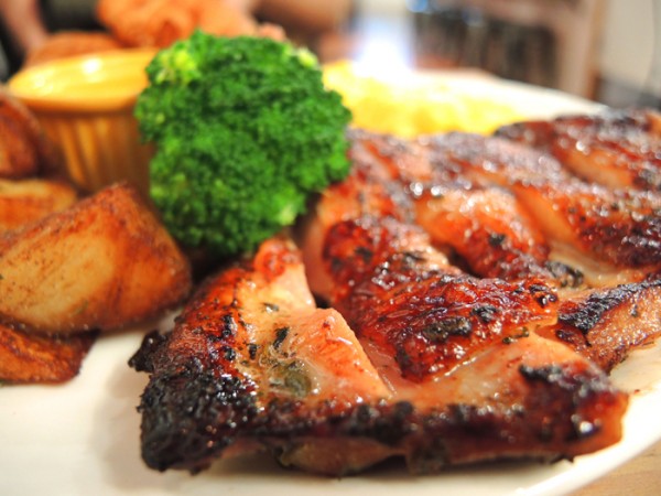 自製香料的無骨雞腿排,迷迭香加上胡椒香,還沒吃就讓人覺得香氣十足,雞腿肉軟嫩,他的雞皮不是完全酥脆,帶點油脂的口感配上軟嫩雞腿肉,juicy滿分!