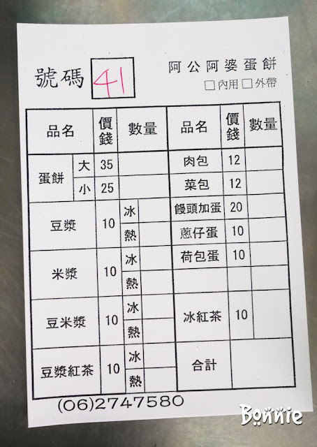 Bonnie因為習慣甜甜的食物所以比較偏好吃蛋餅加醬油膏