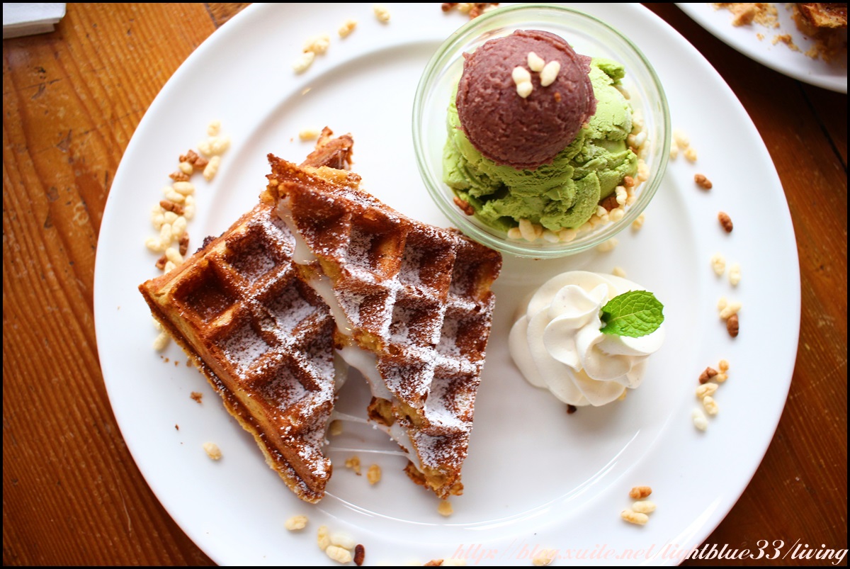讓我跟朋友都超愛的麻糬鬆餅上桌後,我們都眼睛發亮猛拍照,