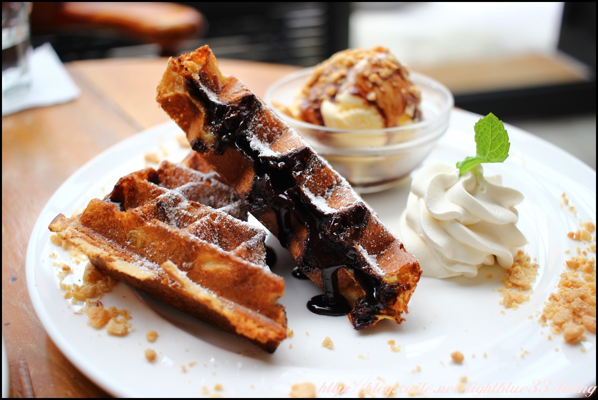 加上庫卡咖啡的鬆餅是細格狀,所以烤過之後就形成了酥脆口感,
