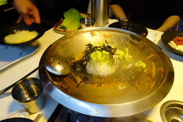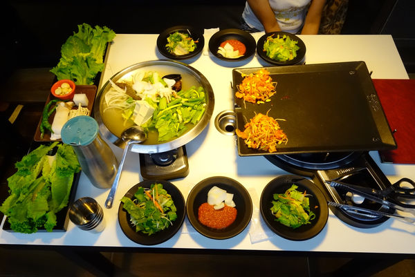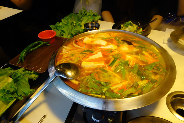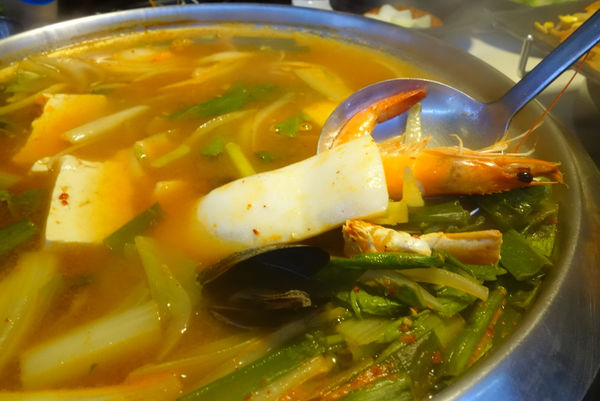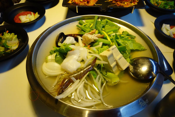 大醬海鮮湯雖然不用另外付費,但卻也沒有因此而馬虎帶過,豆腐、青菜 & 多達四種的海鮮 都在鍋子裡了。