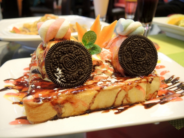 一口冰淇淋搭配法式土司