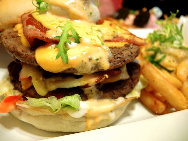 四盎司的厚牛肉兩片+ 雙層培根