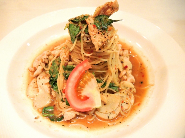 麵條不是一般的義大利麵 是天使麵喔!!!! ← 比一般的義麵更低熱量,也比較細,而麵條上有些粉末,是他們家的獨家香料 鯷魚 ← 原本有刺,有特別先處理過。這道菜是看不到魚的,魚已被搗碎在其中 它是先醃製過,偏重口味
