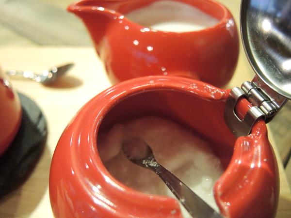 一邊是糖、一邊是鮮奶→依個人喜好加入
