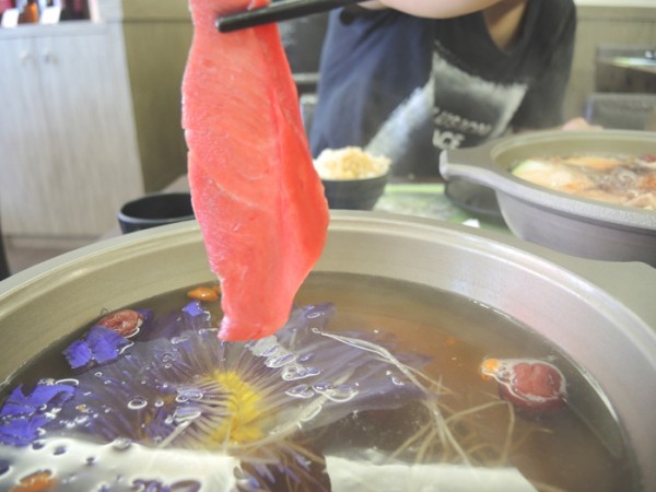 來櫻之田野,不可錯過的秀就是這個啦!!!!! 在火鍋中蓮花盛開的奇景阿~露易絲今日獲贈紫蓮花一枚><(有5種顏色隨機)等湯煮滾後,店員會來講解九品蓮花鍋的吃法,原來蓮花的底座是最富有膠原蛋白的唷~想吃蓮花,煮10分鐘即可拿起來品嘗,如果不想吃也可以繼續熬湯。