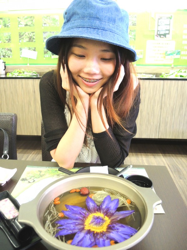 露易絲上次看到新聞說台北有一家養生野菜鍋 !!!!! 在火鍋裡,蓮花也能開耶 ! ?