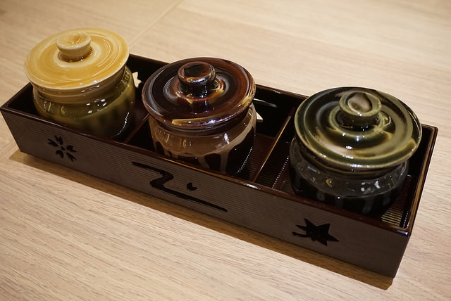最右邊兩罐用來淋在高麗菜絲上,中間兩罐是豬排醬。