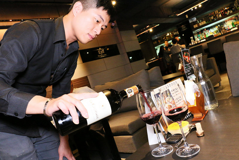 帥氣服務人員幫我們開紅酒