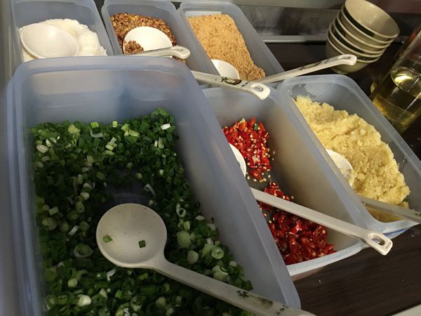 重口味的吳敵最喜歡的不外乎蔥花、辣椒和蒜末