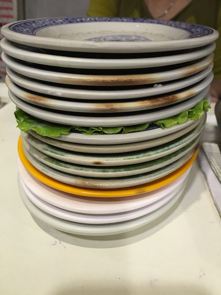 花盤$95元、乳白綠盤$75元、白盤$55元、橘盤$25元、黃盤$15元