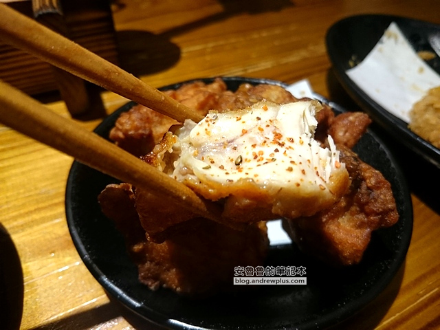 ▼麵衣一樣很薄吃起來有點甜甜的味道,雞肉很嫩帶點油脂應該是雞腿肉,灑上一些七味粉味道更棒了!