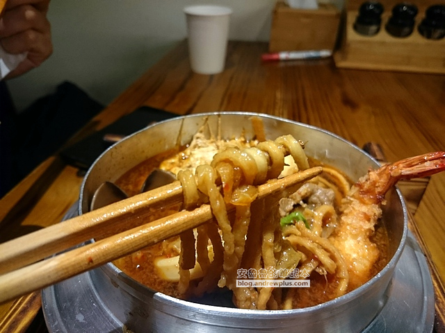 ▼安魯魯愛吃南部的意麵,是因為雞蛋麵經過油炸之後,不但香而且口感更好~還會吸收湯汁~吃一口麵也能嚐到湯的鮮甜! 韓式泡菜鍋燒 預想就是酸酸辣辣的口味,這一鍋吃起來微酸微辣,酸辣的程度只是剛剛好讓味蕾醒了過來,但不會太刺激,鍋燒麵裡面能看到炸蝦~算是很少見又有誠意的! 蝦子的個頭適中~安魯魯推測應該是甜蝦~蝦肉還滿Q彈的! 蔬菜和蛤蠣讓整個湯頭增添了鮮甜的滋味,魷魚圈彈牙~可惜只有一小圈~有點意猶未盡,海鮮漿感覺還滿一般般的~里肌肉略硬不過有吸道韓式泡菜的湯汁,吃起來別有一番風味! 也許南部口味的關係所以湯偏甜~