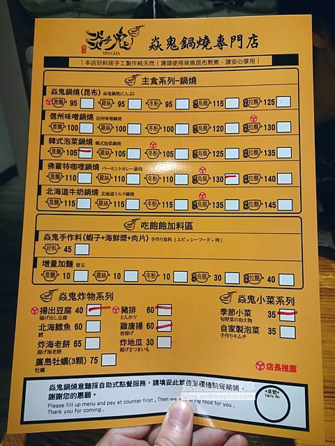 ▼點餐要先完成菜單上面的畫記~(好像在填答案卡!)