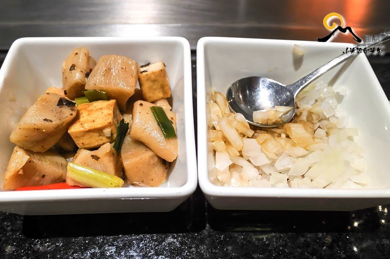 ▼桌上的小菜有「菜圃豆干」跟「洋蔥丁」