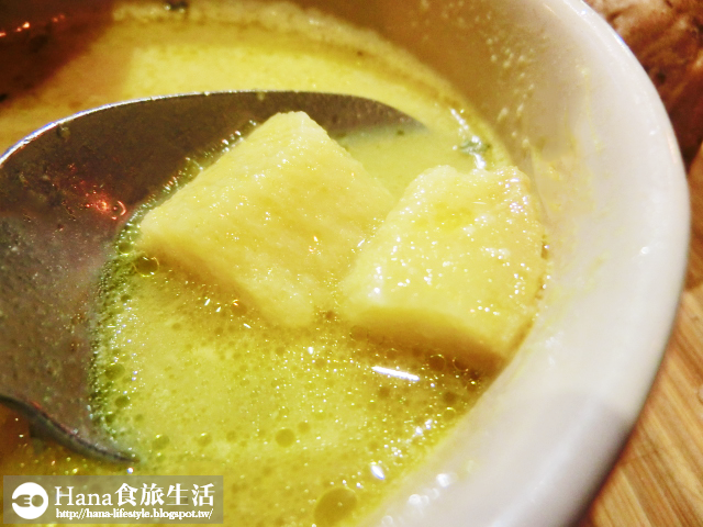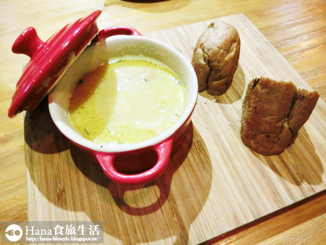 ▲加100元套餐附的濃湯和麵包,濃湯用小小的陶鍋盛裝很可愛