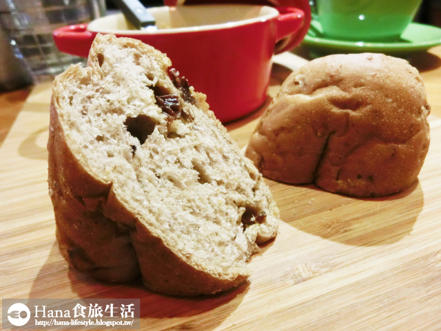 ▲麵包裡有些許的葡萄乾,吃起來較為紮實有嚼勁,在口中越嚼越香~