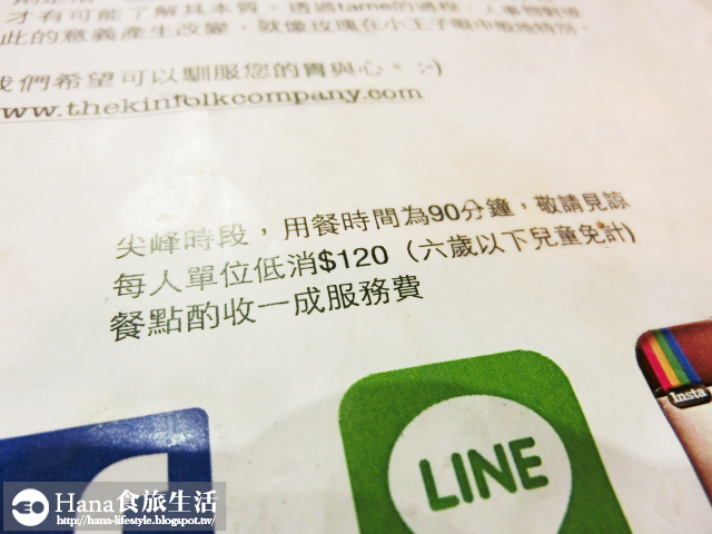 ▲來店用餐每人低消$120,時段限90分鐘,酌收一成服務費
