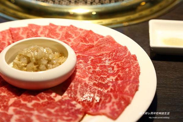 排成圓弧狀的,是切得比較薄,另一邊的,則是切得比較厚的和牛