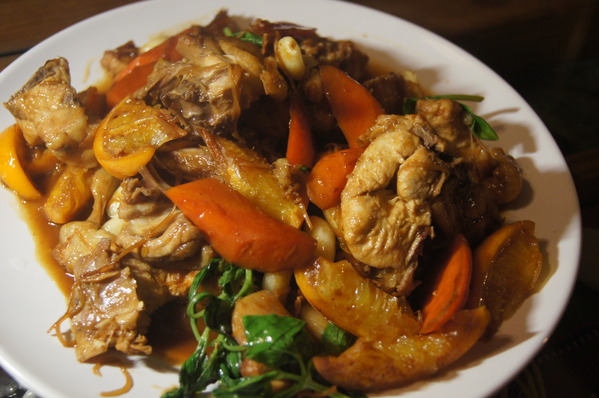 三杯雞是特別加了柳橙一起料理的,吃起來橙香味特濃,搭配起來淡淡的甜也不會太鹹,特別入味好吃!!