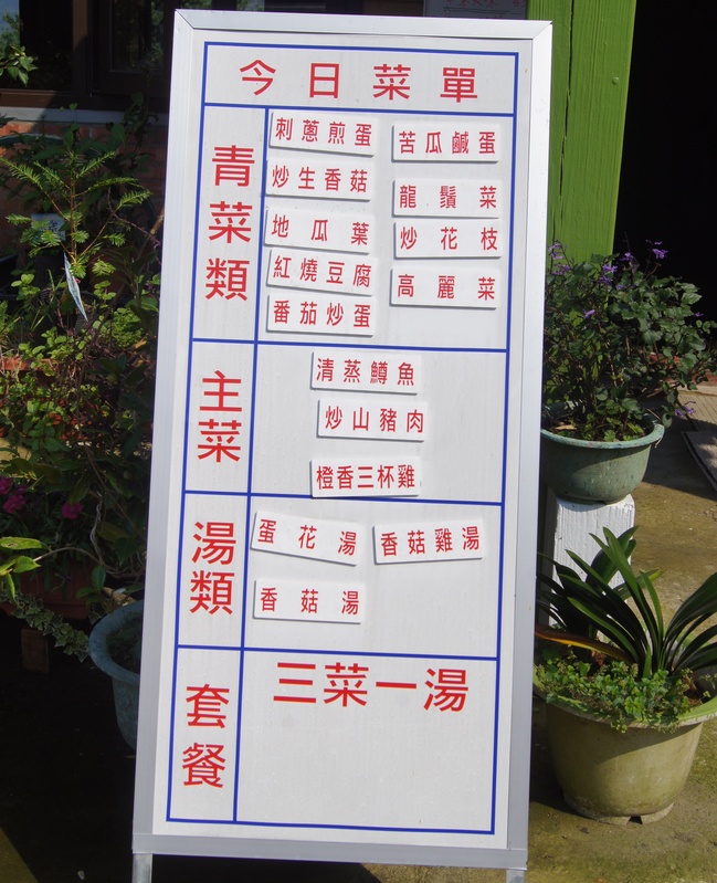 老師說斜坑料理所使用的蔬菜也都是他們自已種的,澄香三杯雞、刺蔥煎蛋、清蒸鱒魚都是這裡的特色風味料理。尤其是燒酒雞是由小米酒不加一滴水燉煮出來的,特別的酒香氣息真令人回味呀!!