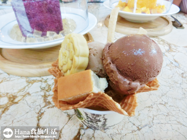 ▲雙球冰淇淋+餅杯$170,加的配料有花餅、乳酪蛋糕和奶油脆餅