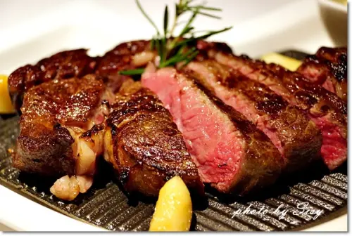 店內人氣料理「澳洲和牛紐約客」,選用的牛肉是由澳洲牛與日本和牛混種產下,