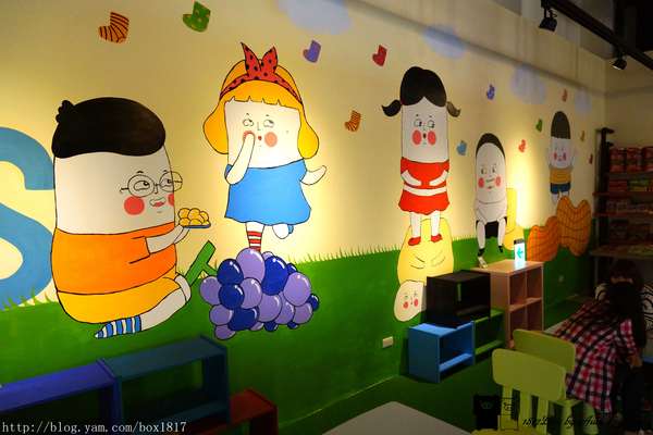 在哪裡?? 鵝黃色的建築加上生動活潑的Lu’s插畫,