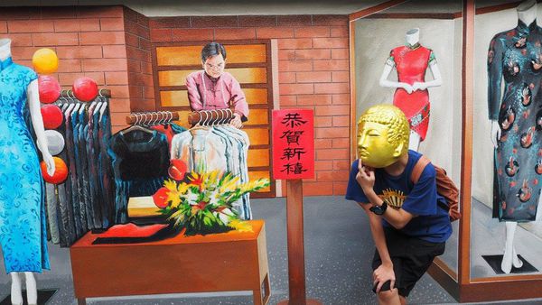 ▲首先是旗袍店,不過要正面將整個拍進去很難,這已經最緊繃了,因為現場已無法再更退後拍了
