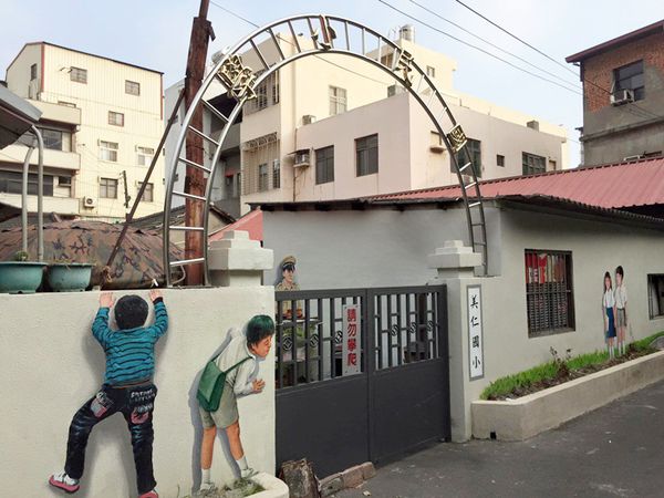 ▲這兒有「美仁國小」的招牌但怎麼看都不像真的學校阿,應該只是裝置藝術吧(?)XD 門口旁很配合地畫了鬼鬼祟祟準備翻牆的學生,等一下,這樣看來方才那談戀愛的小兩口也是美仁國小的學生囉?(因為他們手牽手朝著國小門口的方向前進),要命!小學生就這麼早熟,可惡我輸了,我以為我國二初戀就算早了(←幹麻自爆往事?)