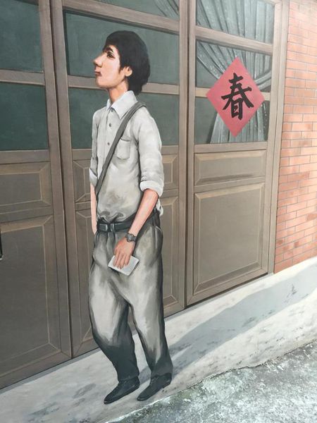 ▲門口內的牆面還畫了一位教官,真是「面面俱到」阿XD 但裡頭是別人的住家,是不能進入和教官做親密接觸的(是想跟他怎樣?)。其實這一帶都是住家,所以來參觀的人要有所節制,以不影響到住戶為原則