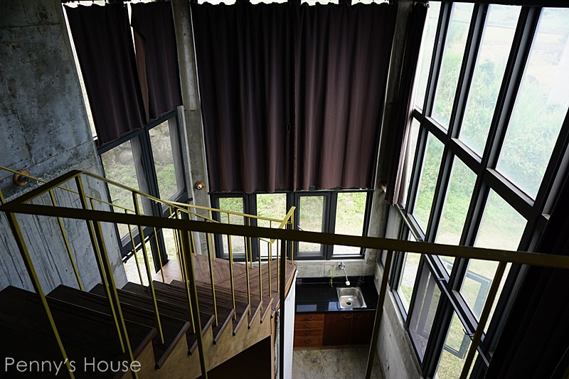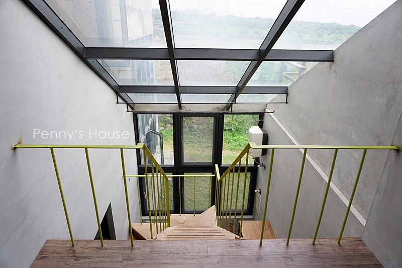 房間有兩個門,另一個門也有到一樓的樓梯,而且樓梯上是透明的屋頂,很適合曬衣服XD