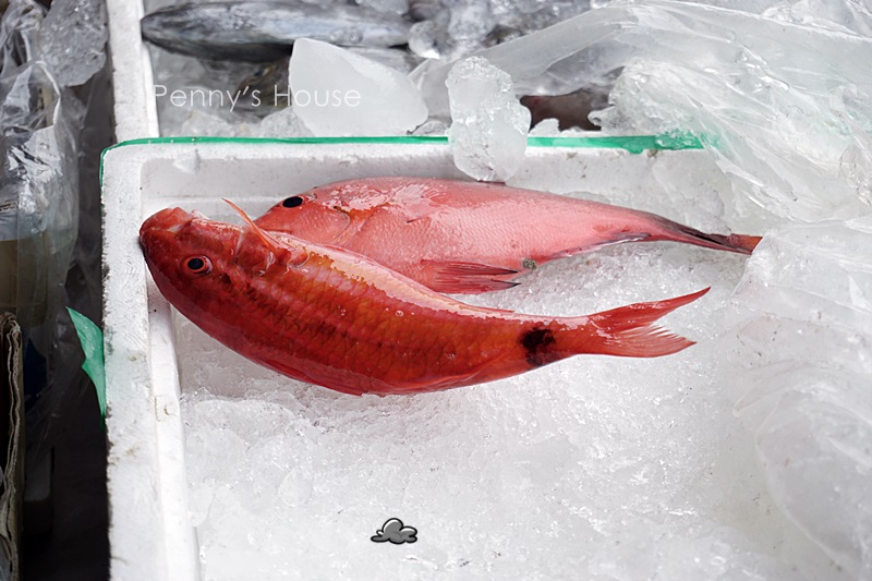 最後帶了一條紅紅的魚,忘了名字,今天撈上岸的唷~一隻約 $290,