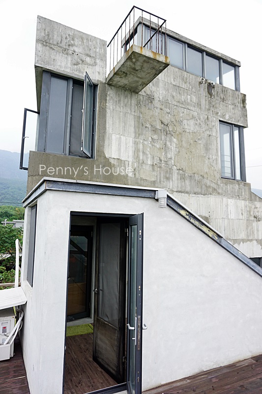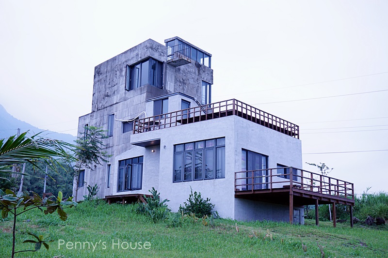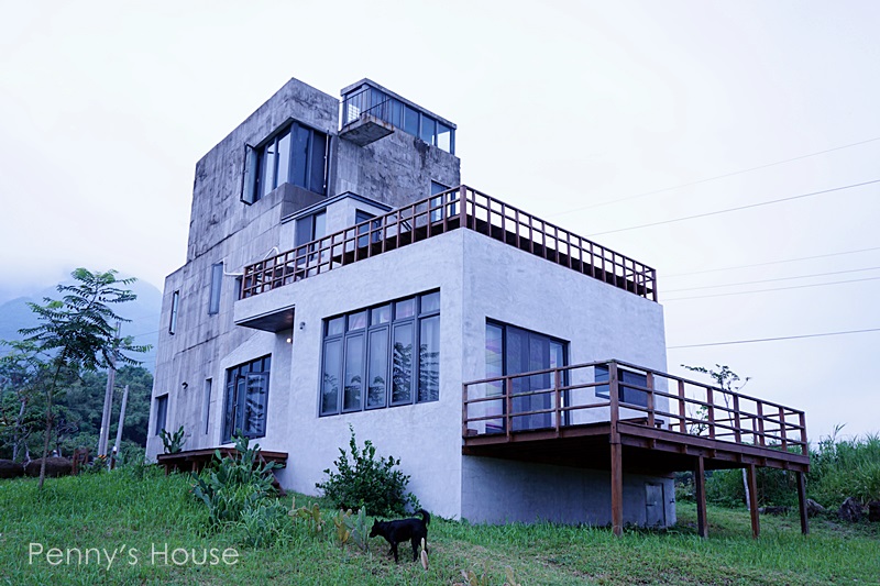 這一區幾乎都是陳冠華建築師的設計案,下面是灰黑橘藍民宿、阿朵避,還有下下圖的自有宅。