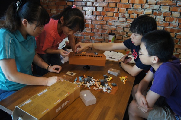 小孩比我更加進入狀況,聽Ariel說FB的遊戲裡也有類似的遊戲,不過,Hank媽覺得,有互動的桌上遊戲比一個人悶著玩線上遊戲還要好玩得多了。