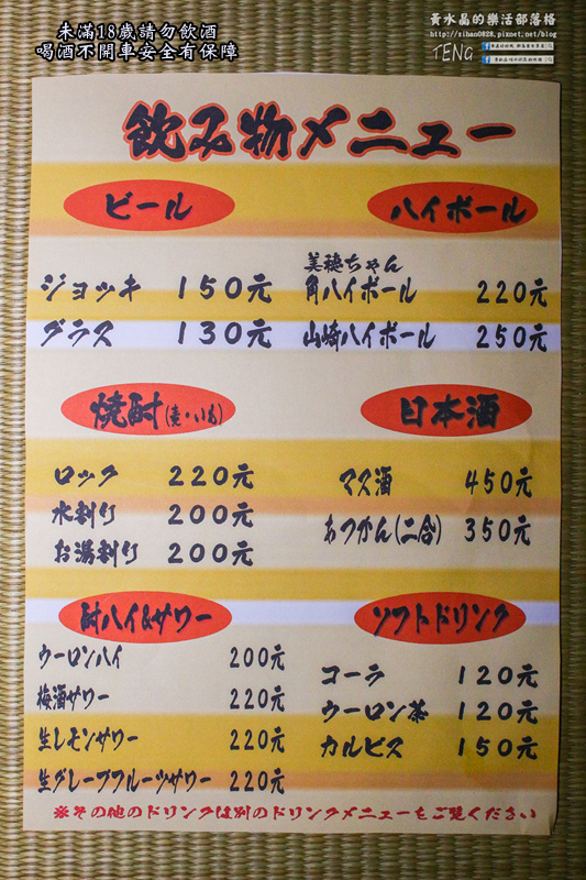 爐端燒居酒屋「狸」/酒水菜單