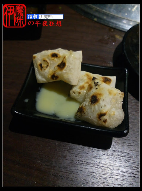 至於烤的部分喵就不多放照片了,因為這種燒烤的好處就是在於自己料理想要吃的熟度,所以不用擔心吃到不合口味的熟度;麻糬方面是喵姊烤的,實在很厲害,烤的外面脆脆的,裡面則是軟Q軟Q,而且只有煉乳搭配,喵反而不太喜歡沾煉乳再沾花生粉的麻糬,喵比較喜歡吃這種的。
