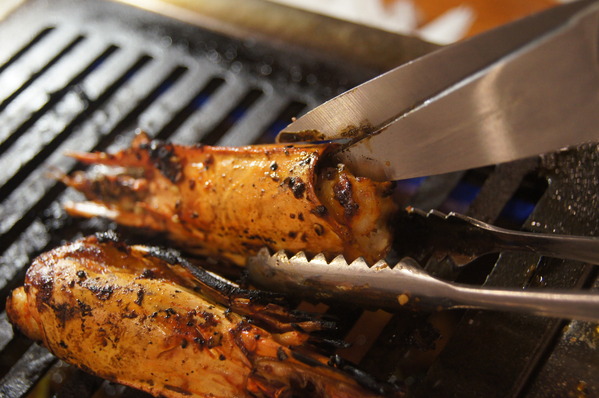 烤蝦在烤肉中是最美味的海味,肥滋滋的大草蝦,蝦肉質Q彈紮實而且好鮮甜喔!!