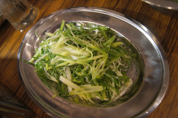 好大一盤生泡菜啊!!這是使用大白菜製作,吃起來辣味、脆度都很足!!