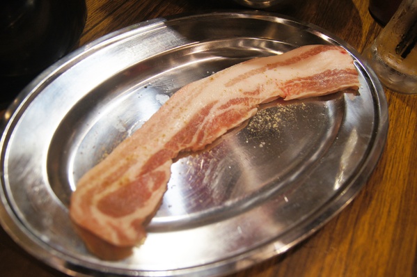 肥肉、瘦肉比例抓得恰到好處的豬五花,逼出油後自然也沒那麼油膩,而且一下子就熟了。煎的恰恰的,白肉酥脆多汁,加上雪鹽調味,十分好吃!!